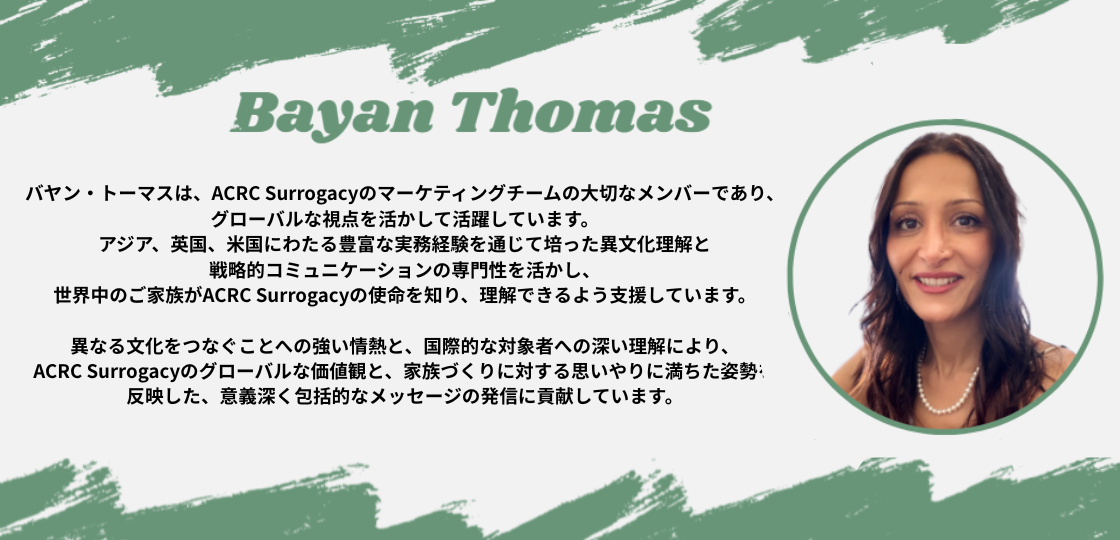 ACRC Surrogacyは、依頼者の皆さまを、思いやりあるケアと先端の生殖医療技術でサポートし、安全で期待に満ちた家族づくりの旅をお手伝いします。