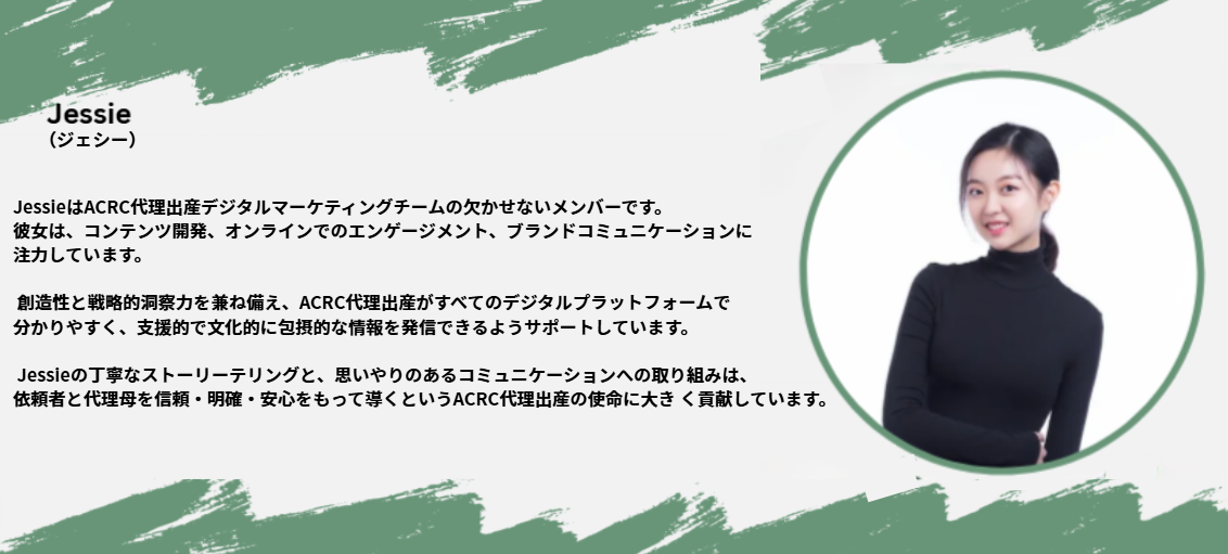 ACRC Globalでは、当社チームと代理母との間に強い信頼関係が築かれることで、依頼者の皆さまに対して、より質の高いサポートを提供できると考えています。