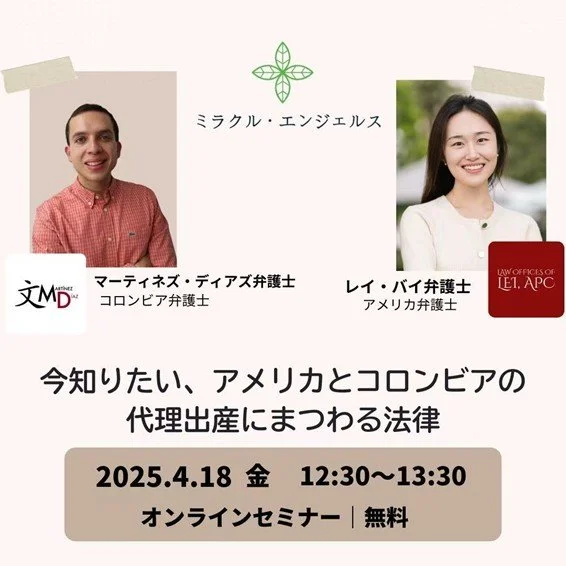 ミラクル・エンジェルスでは、代理出産を検討されている皆さまに向けて、アメリカおよびコロンビアにおける代理出産の法制度や手続きの違いを学べる特別セミナーを開催いたします。